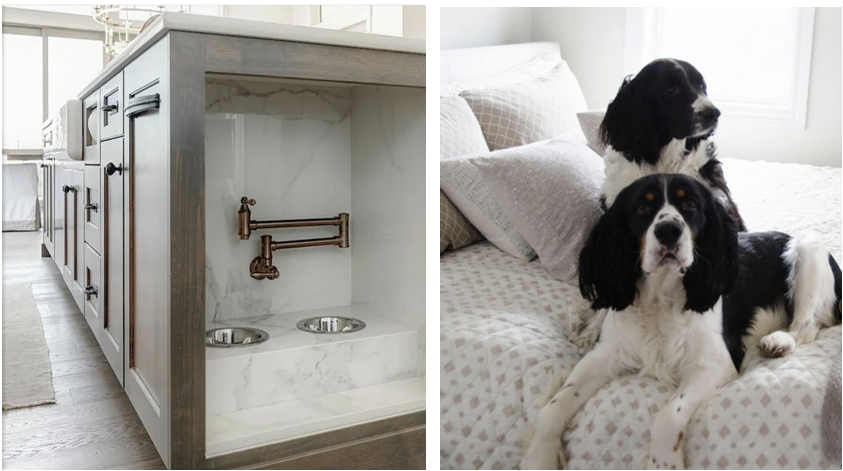 Durable flooring, easy-clean surfaces, and smart layouts ensure the kitchen works just as well for furry family members & people.