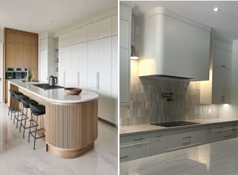 Sharp lines and rigid layouts are giving way to softer, more organic forms. Curved kitchen islands, rounded cabinetry, contoured range hoods, and flowing stone countertops are defining modern kitchen design.