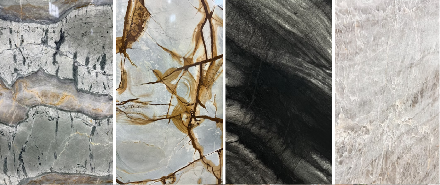 Dramatic stone veining adds visual interest, while engineered quartz options provide durability with low maintenance—ideal for busy households.