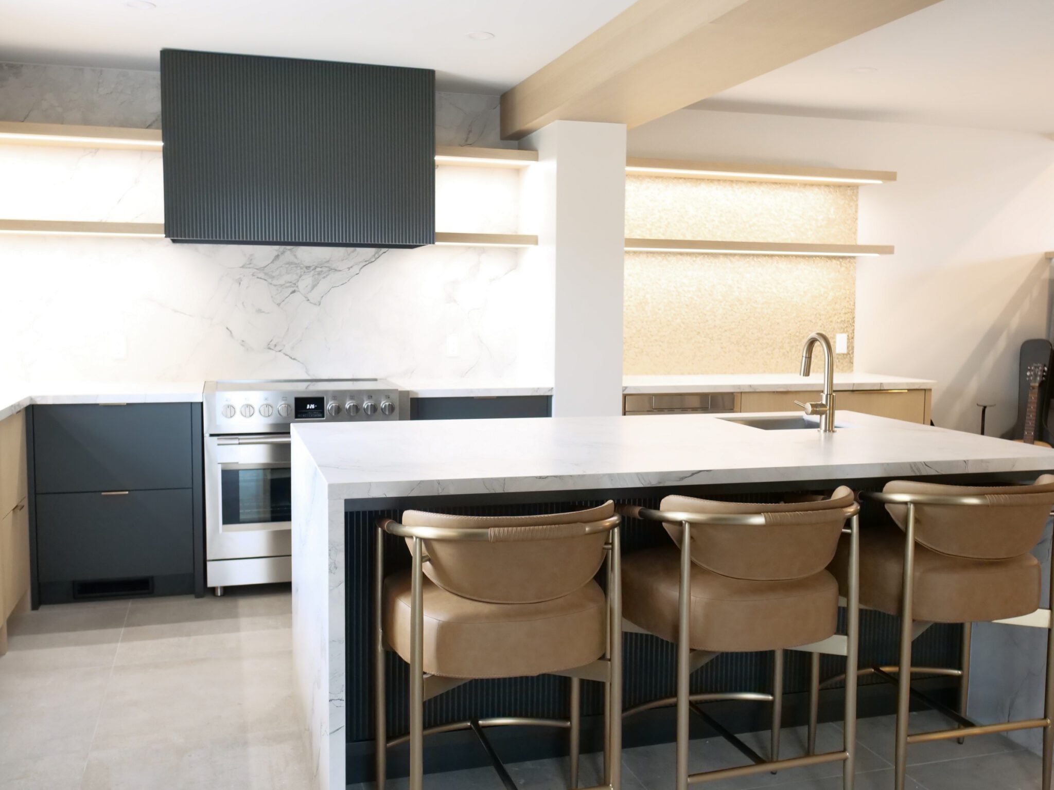 | Island/peninsula layouts | Added prep, seating and storage; social hub | Open-plan kitchens with room for circulation |